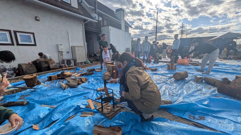 始めた当初は社内行事だった薪割りだったんですが、ユーザーが増えたんで「一緒にどうですか」とOBさんも巻き込んで。