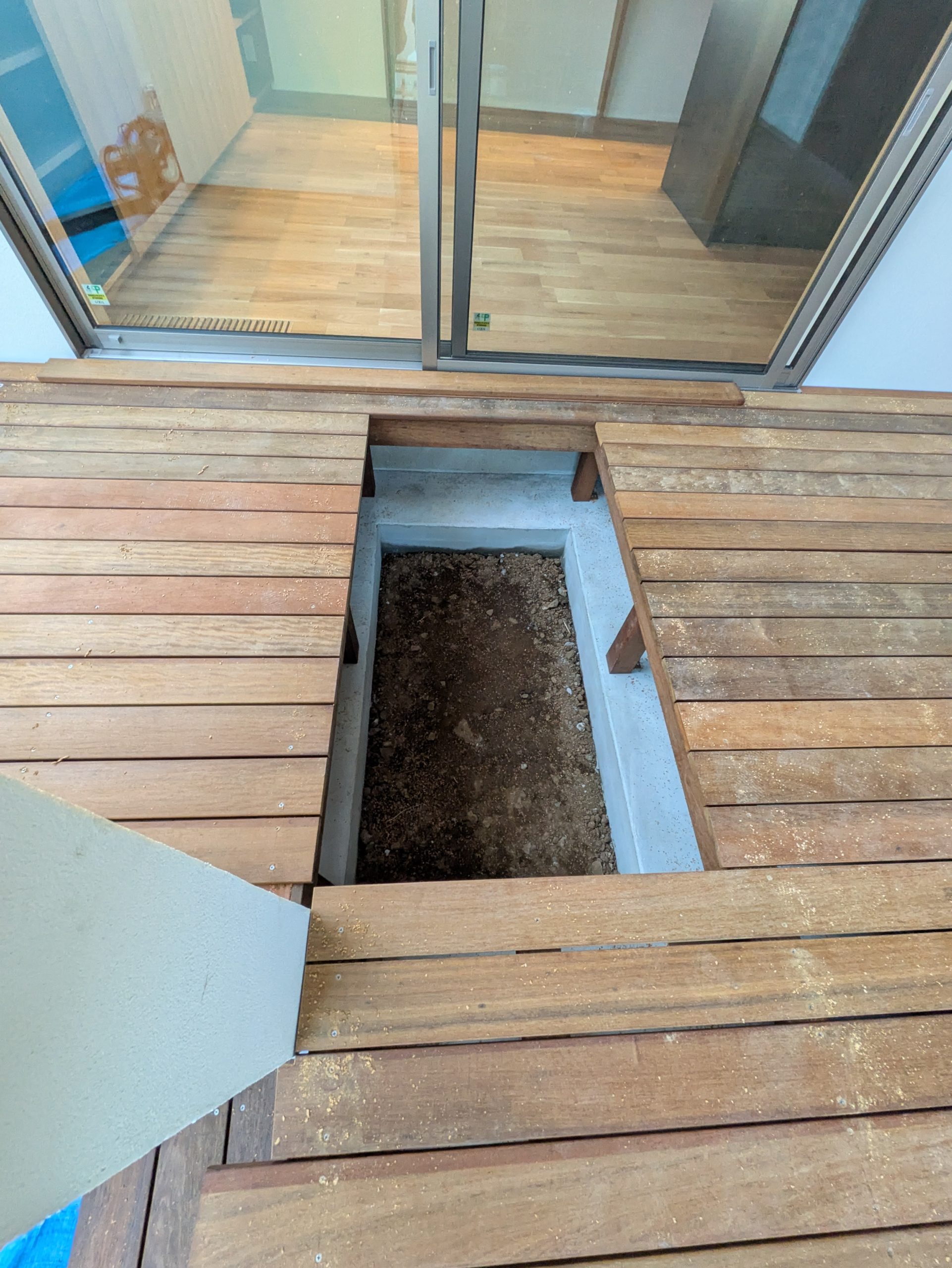 通常植栽はウッドデッキの外側に配置することが多いのですが、