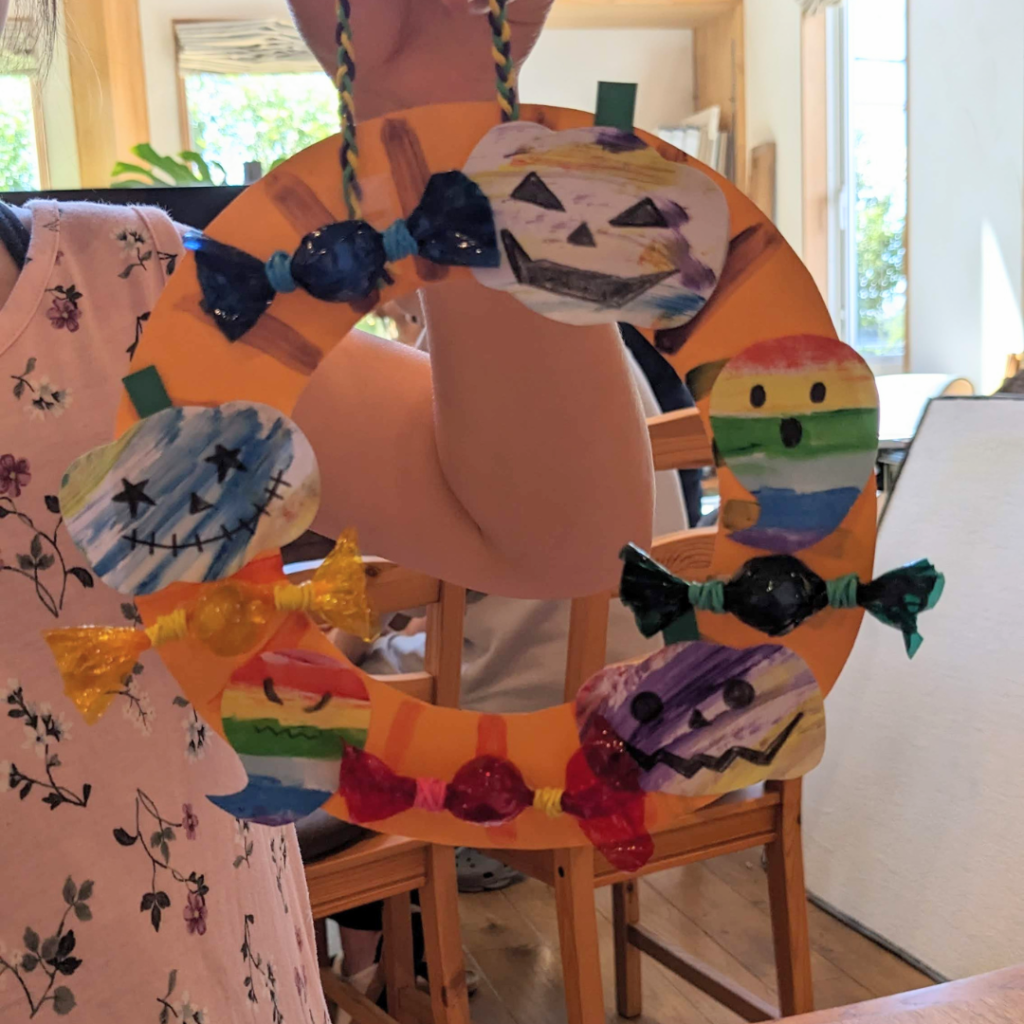 さて先日はご来場いただいたMちゃんとハロウィン製作をしました。