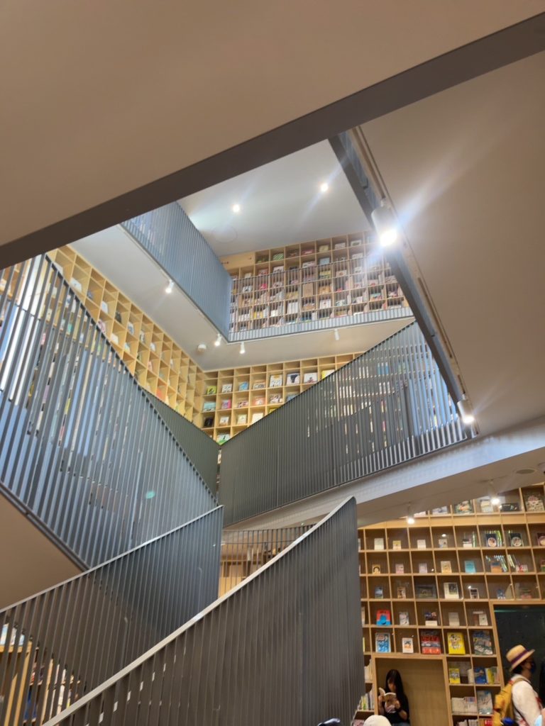 建築家の安藤忠雄が設計・建築費を負担して、自治体に寄贈する形で仙台や熊本など全国に5か所ある【こども本の森】ずっと憧れていた絵本に囲まれた建物です。