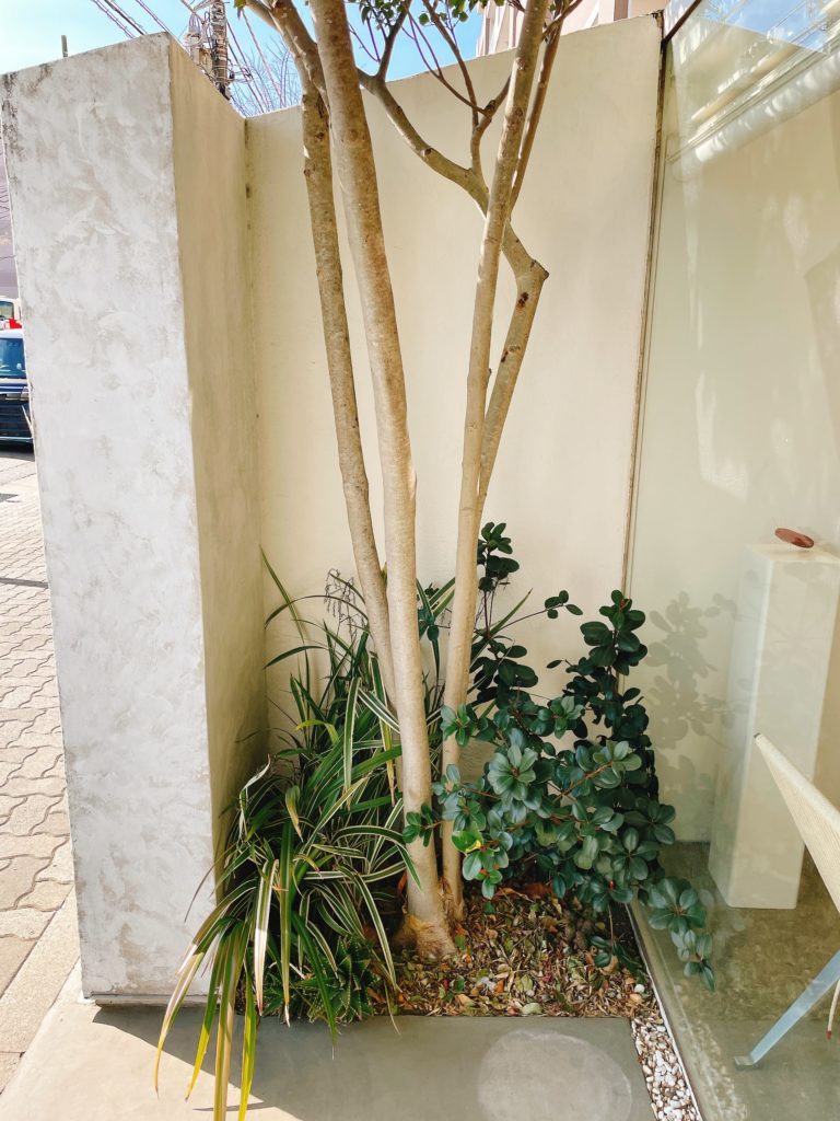 やわらかな左官壁に映る木々の影も、とても印象的でした。