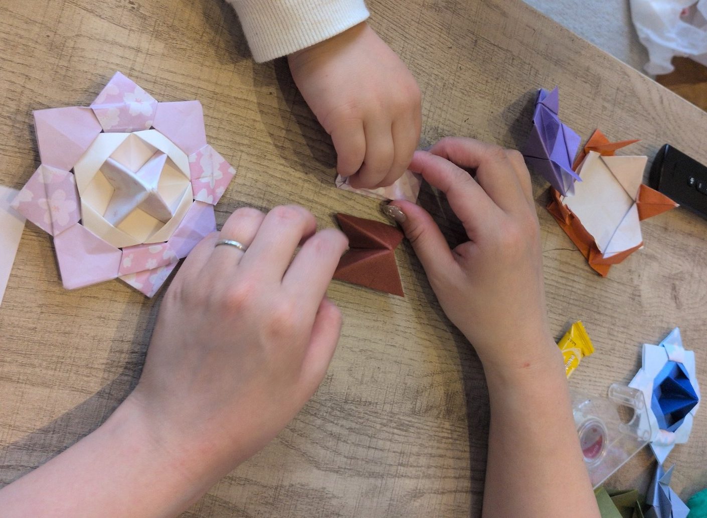 私の手元をしっかり見ながら真似して折ったり、