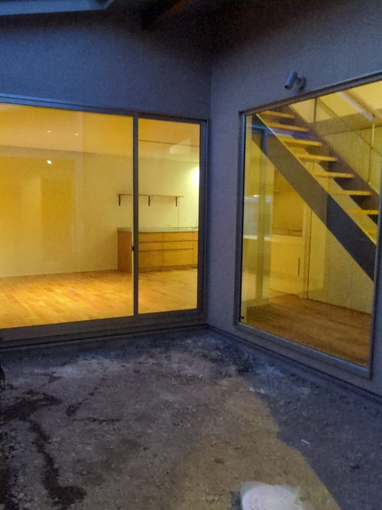 階段に面して大きな窓があり、外の中庭からもデザインを楽しむ事が出来ます。