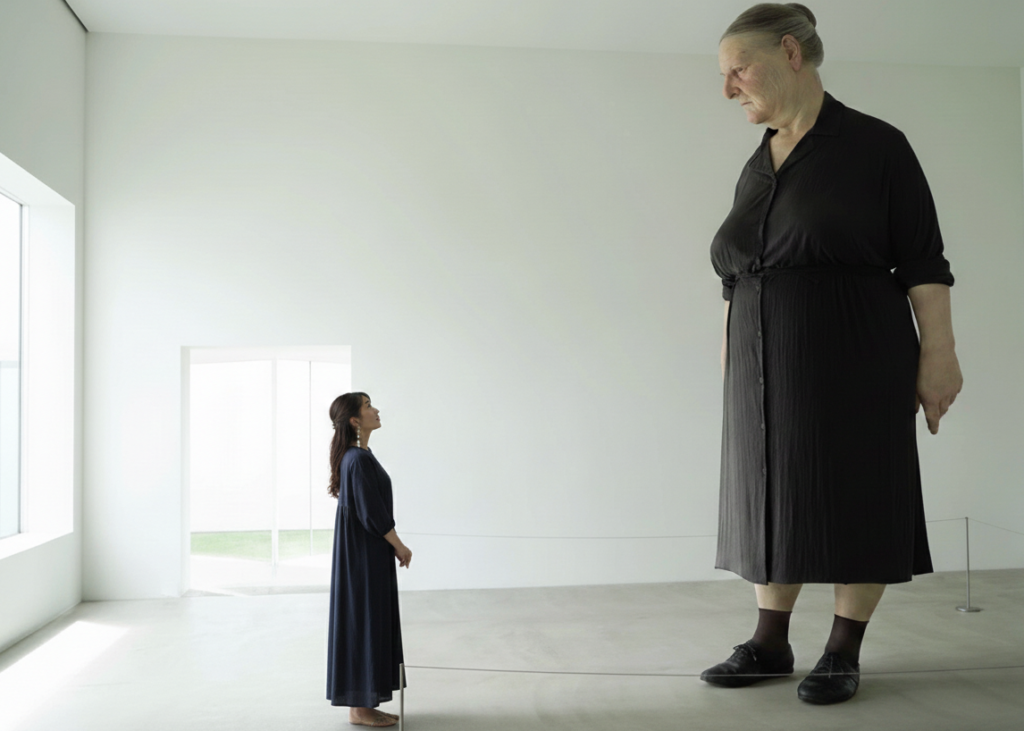 ミュエクの彫刻は、極端にスケールを操作しながら、見る人の感情に静かに訴えかけます。