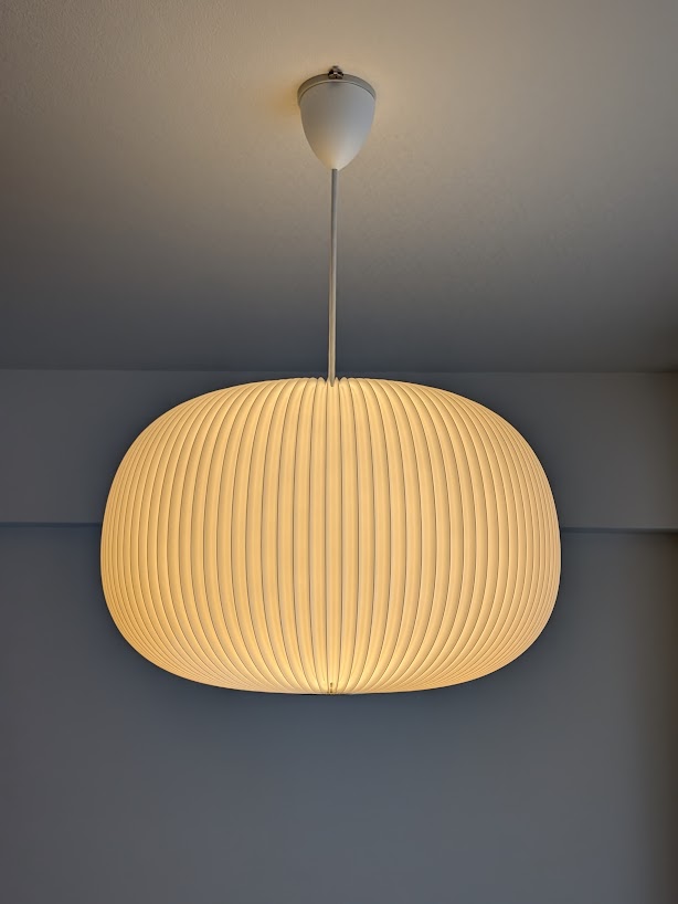 個人的には乳白のセードのペンダントライトを使うことでテーブル以外にも空間を柔らかく照らしてくれるので好きです。