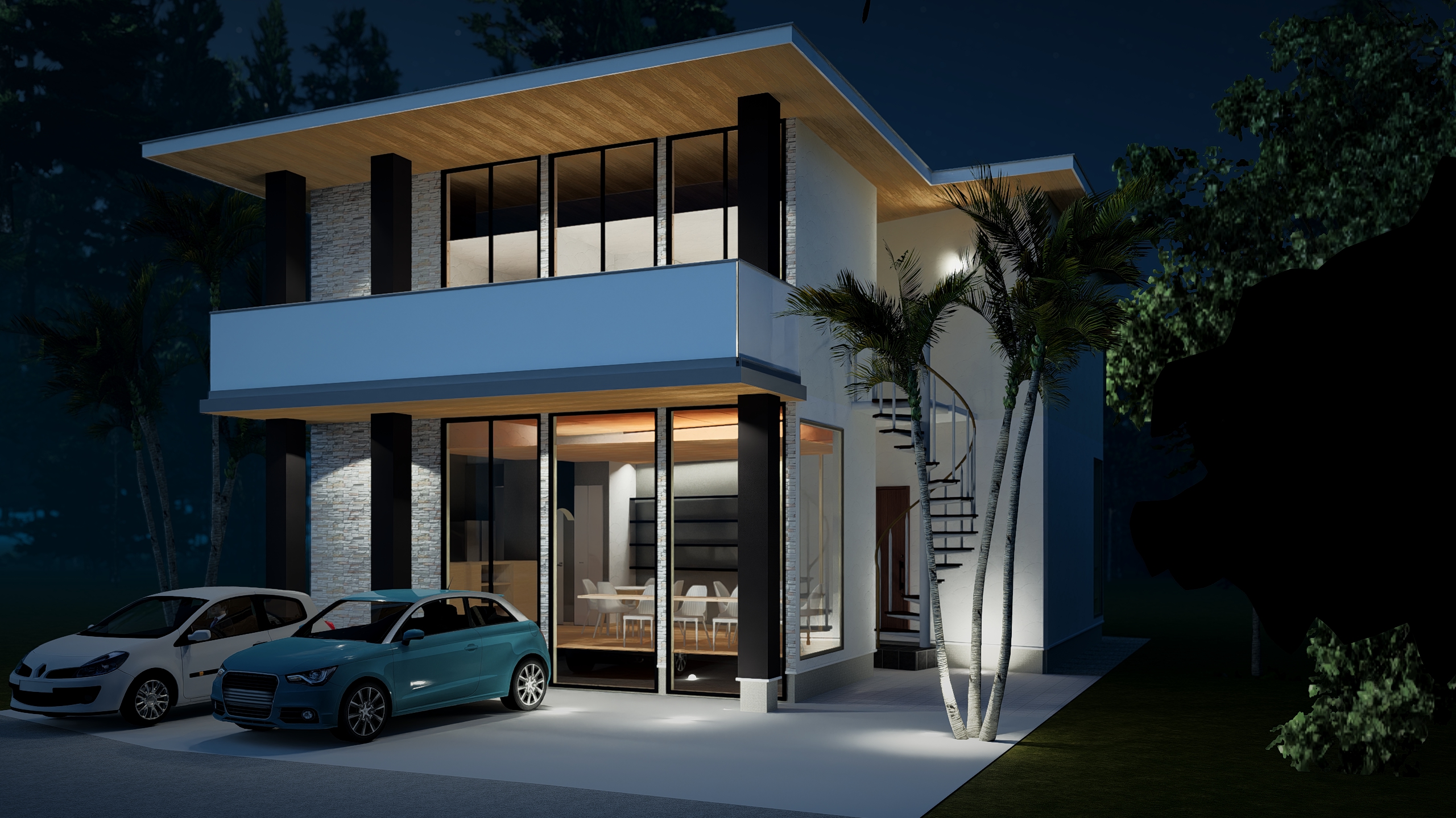 構造も普段の木造ではなく鉄骨との事で、木造と違ったデザインを作る事が出来ました。