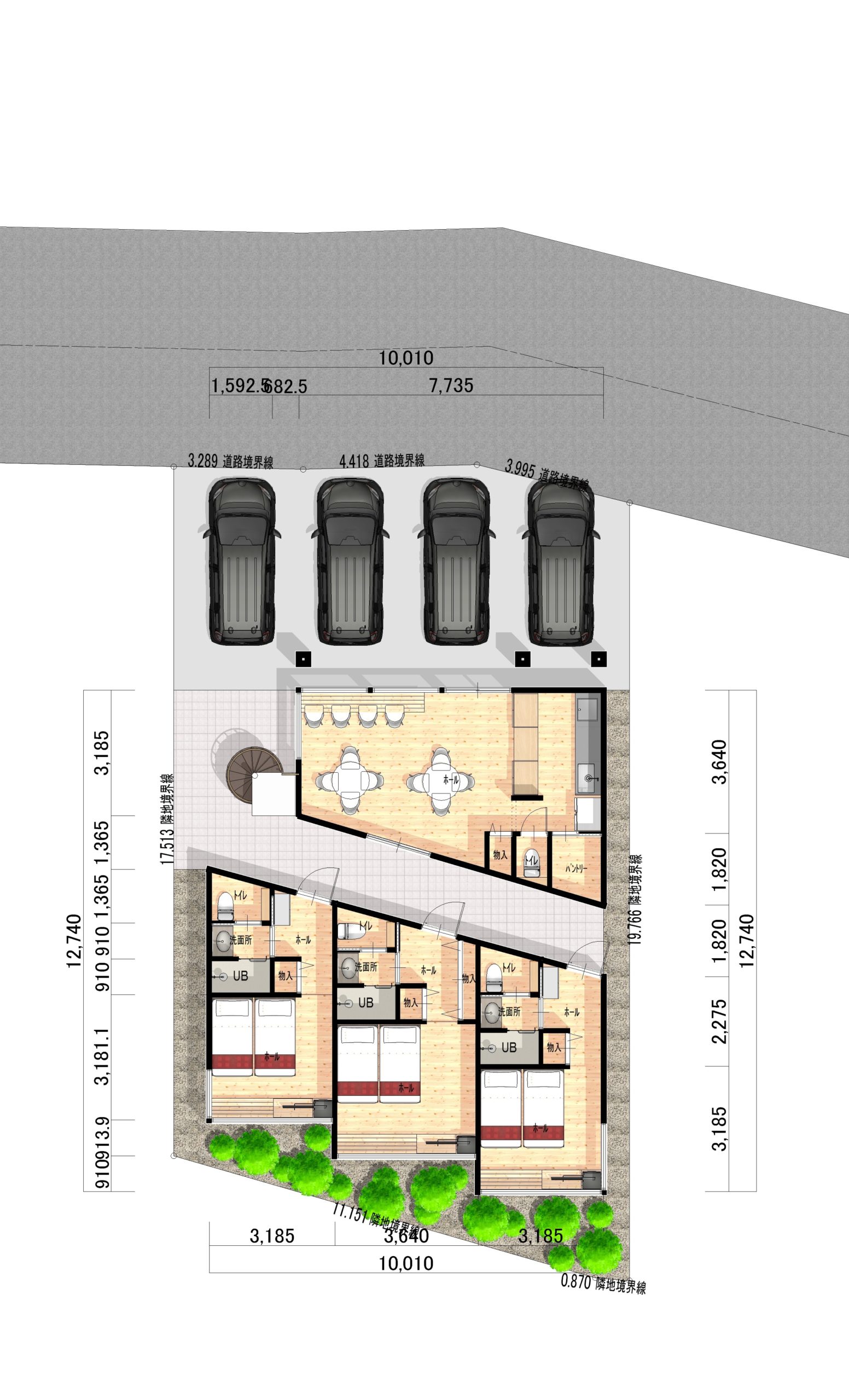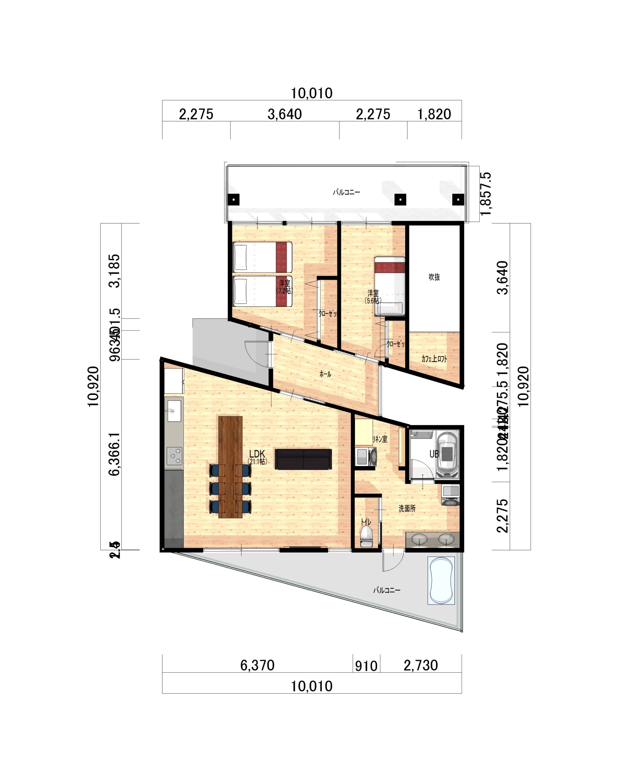 建物はカフェ+民泊3部屋+施主様宅でして、