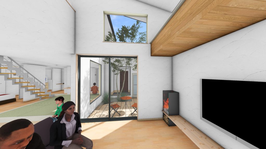 外部からの目線を回避するために中庭式にしています。