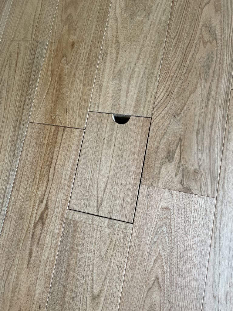 こちらは造作の床コンセントでして、見た目が良いというメリットがあります。