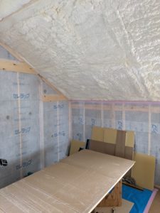 壁にはセルロースファイバー、天井に吹付け硬質ウレタン断熱を利用しています。