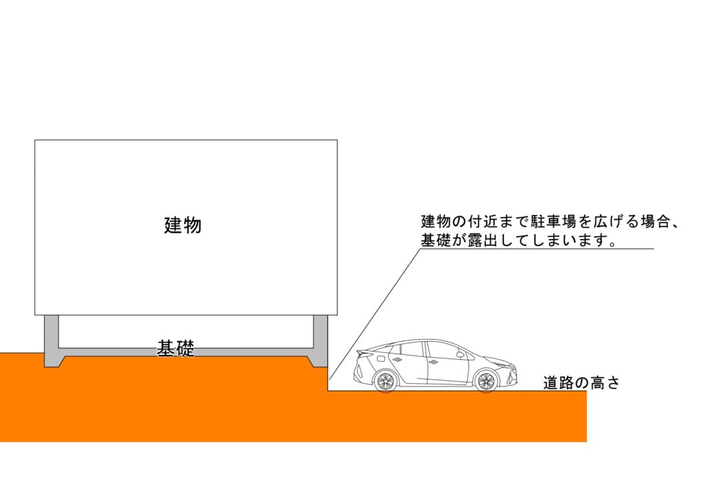 建物の際まで駐車場を広げる場合、建物周囲の土を深く掘る必要があります。