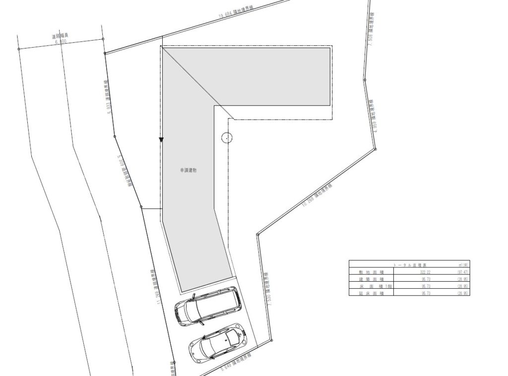 図面左側が道路、グレー部分が建物、右側が庭になります。