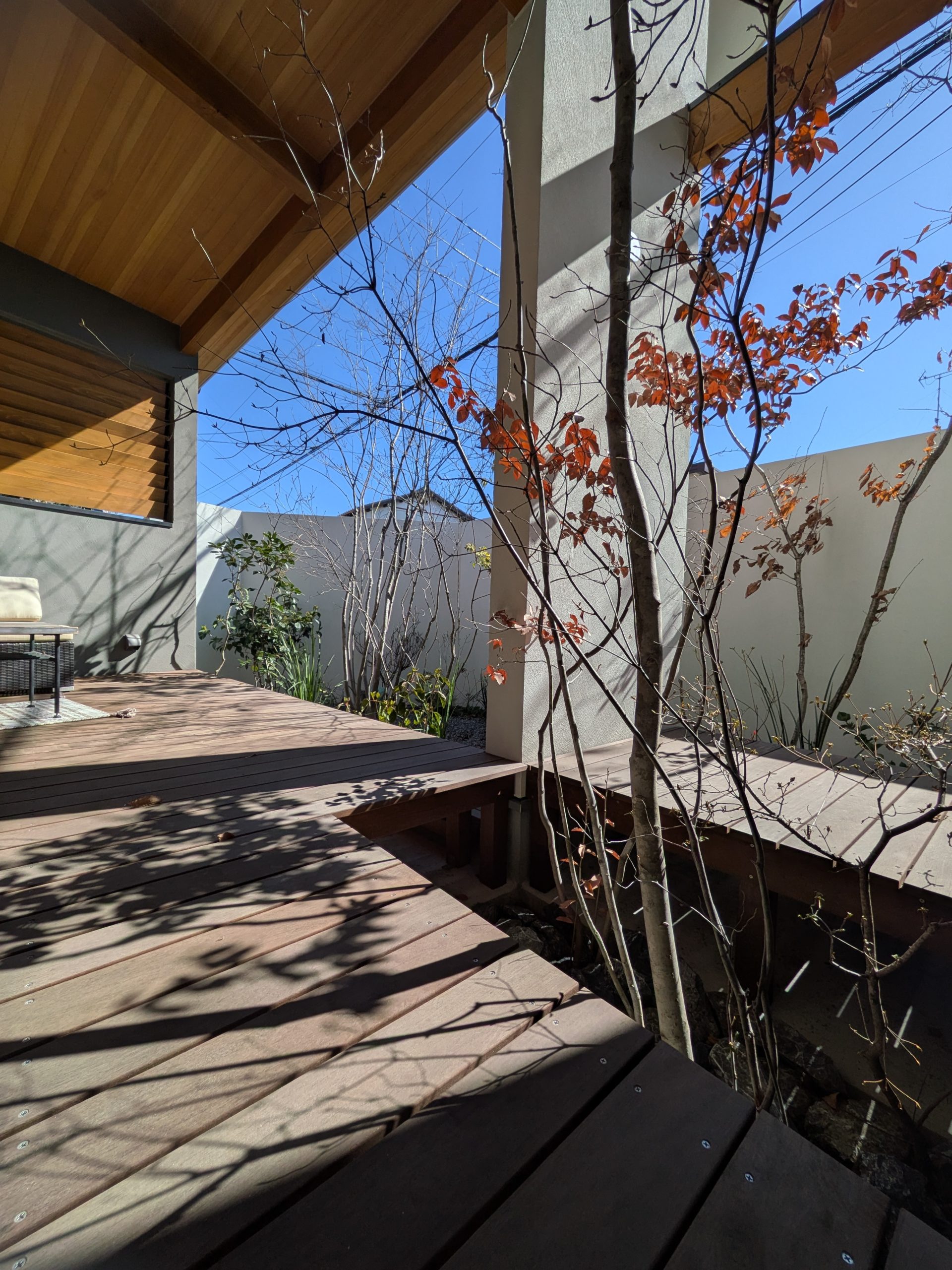 ウッドデッキに出ると、暖かさを肌で体感できます。