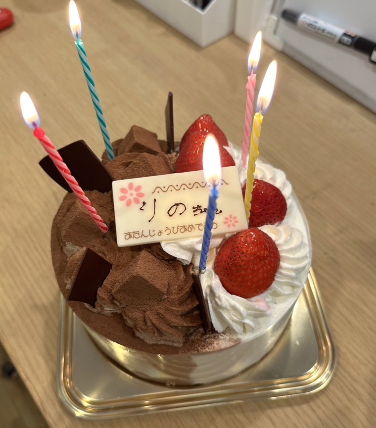 スタッフみんなで集まり、ケーキを囲んでお祝いしました♡