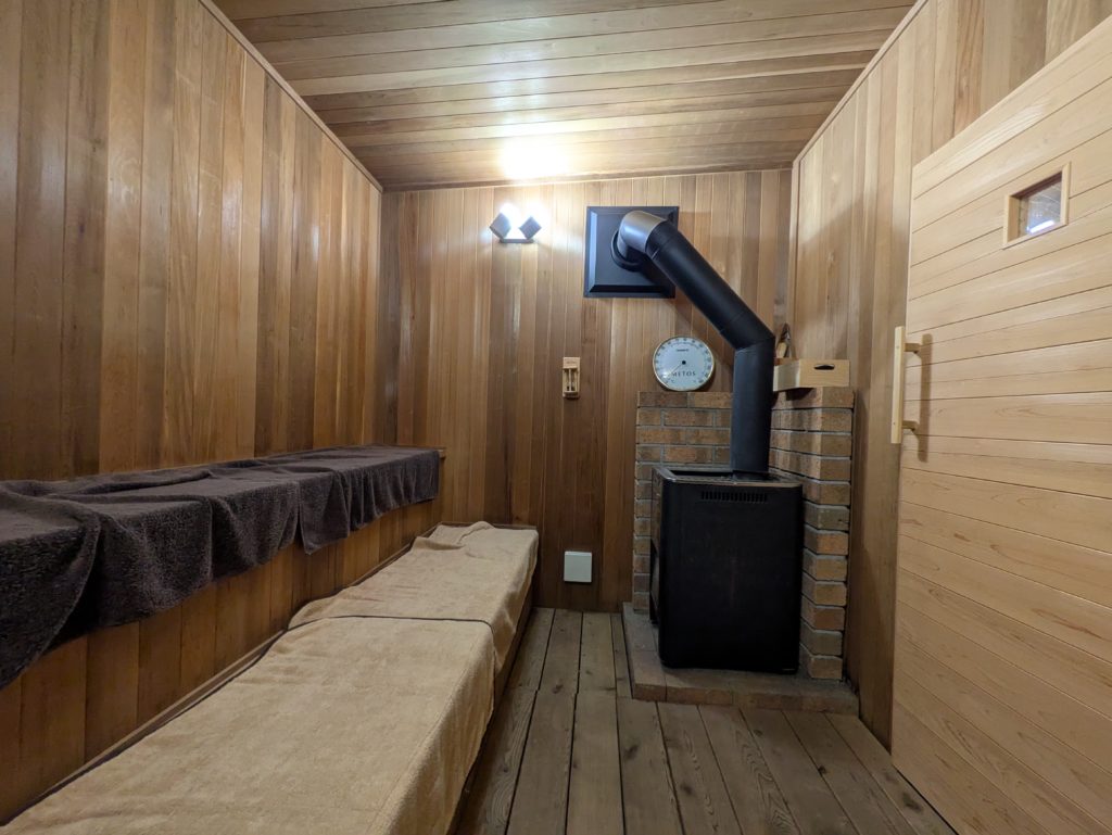 ストーブの存在感もあって、静かだけどしっかり“ととのう”空気があります。