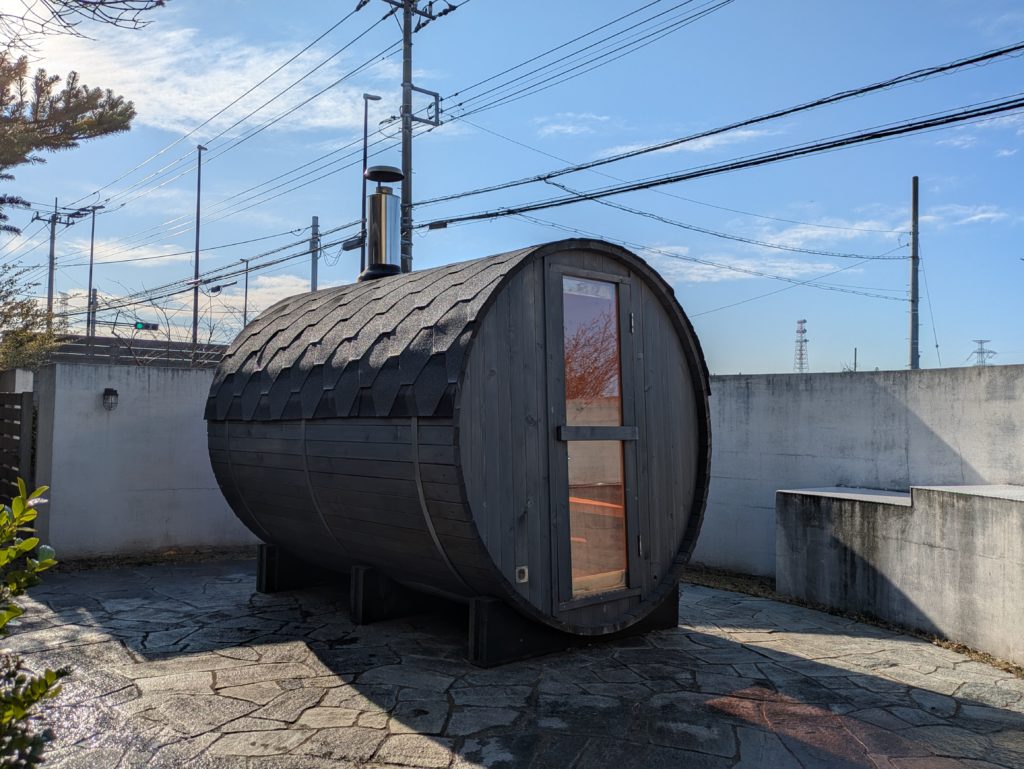 一方で、外にあるバレルサウナは玄関前にあるので、来られた方がよく足を止めてくれます。