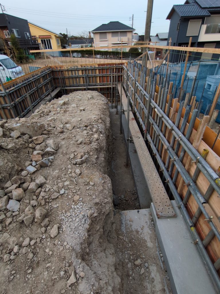一般的な1mくらいの深基礎は鉄枠で段階的にコンクリートを打設しますが、
