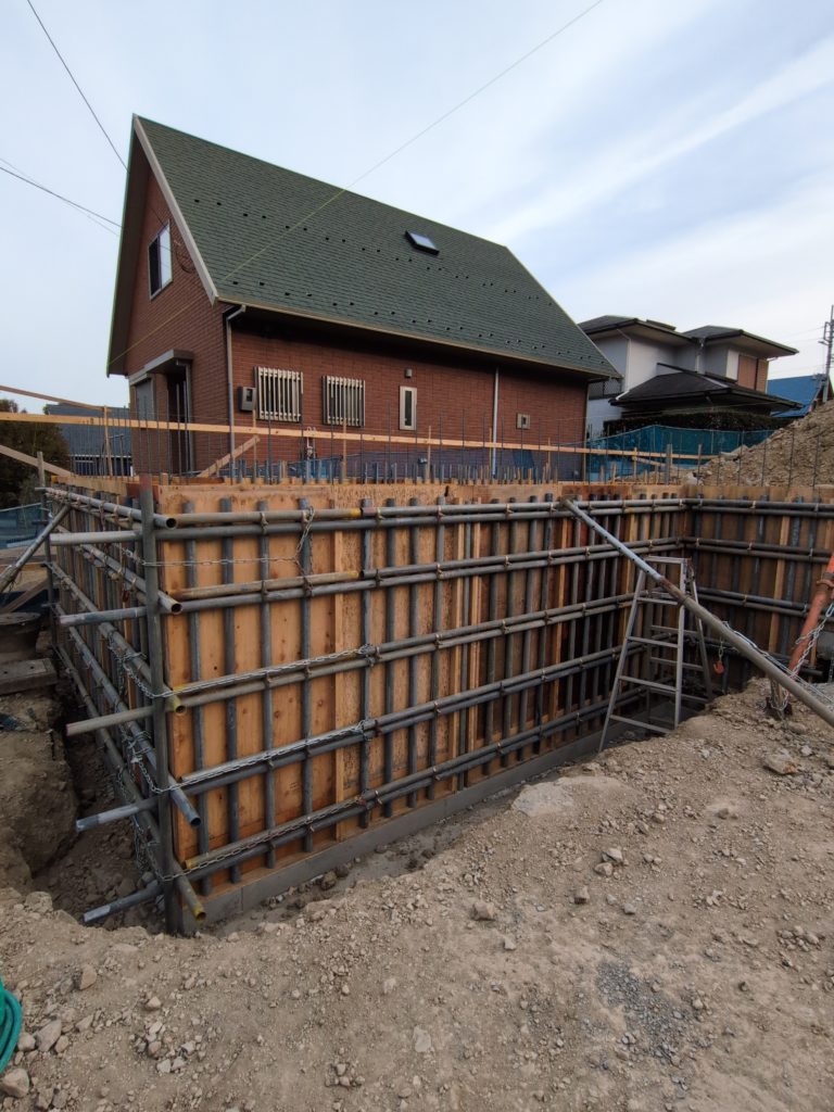 本現場では2mを超える場所もあり、住宅建築工事でも中々見ることの出来ない枠組みを行なっております。