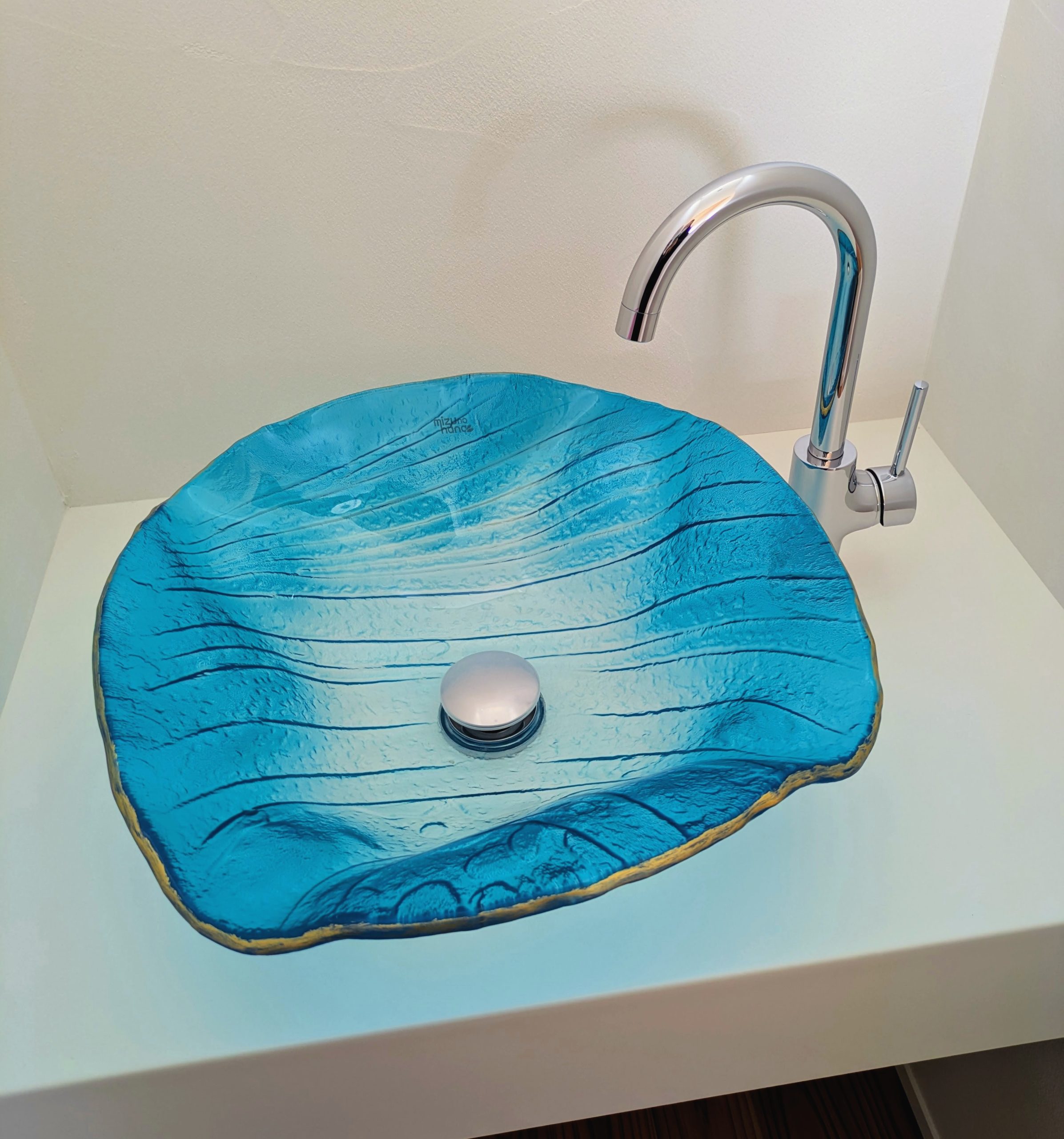 青のグラデーションに程よい透明感、アクセントとなるゴールドの縁。