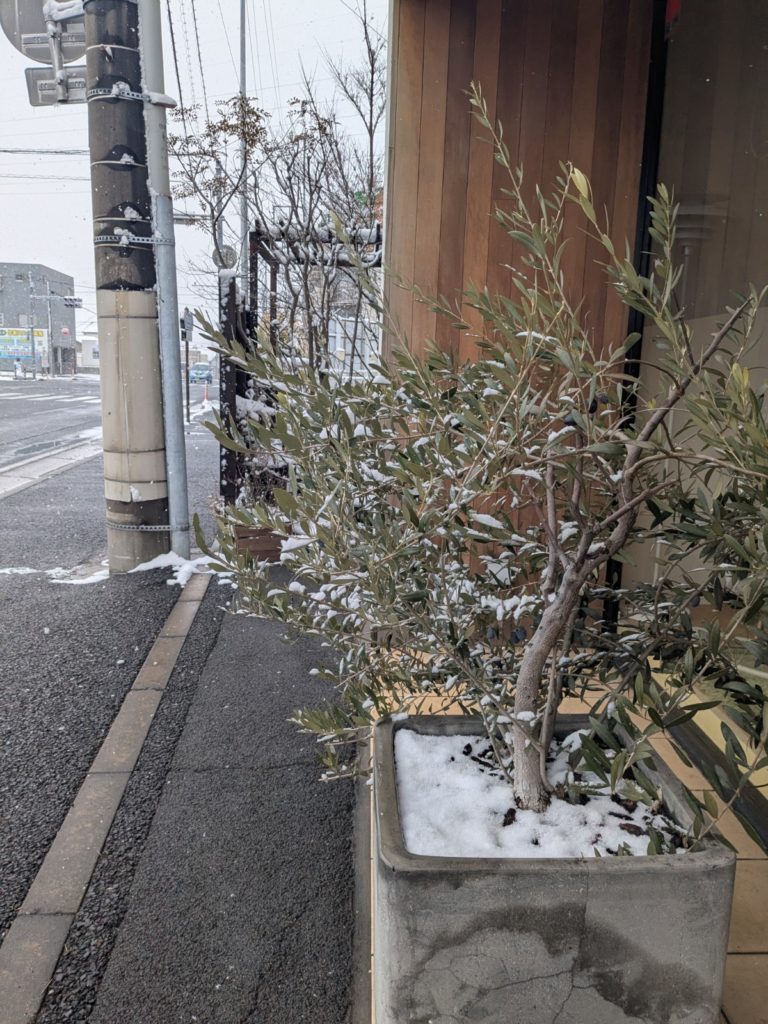 千葉スタジオのオリーブにも雪が積もってます。