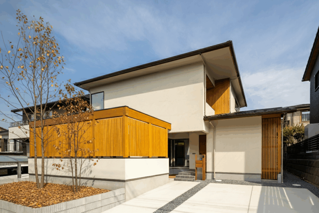 木や塗り壁を外観にも取り入れたナチュラルスタイルは、周囲の緑との調和が美しく、特に千葉の郊外エリアで人気のあるデザインです。