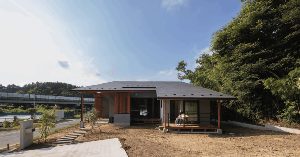 ここからは、エーセンス建築設計が実際に手がけた平屋の実例をスタイル別にご紹介します。まずは、自然素材を活かしたナチュラルスタイルの平屋です。外観の美しさだけでなく、その家でどのような暮らしが実現しているのかにも注目してみましょう。