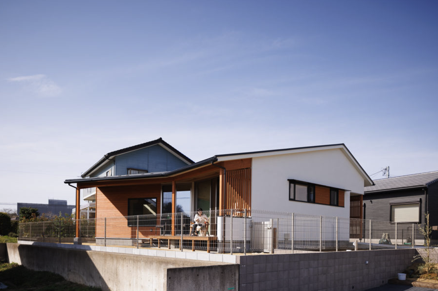 千葉県印西市の高台に建つこの平屋は、遮るものなく外の景色を眺められる立地を最大限に活かした住まいです。「愛犬と暮らす」ことを前提に、人もペットも心地よく過ごせる設計になっています。