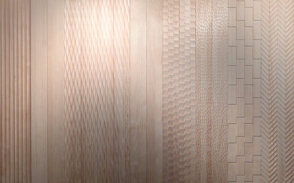 特に目を引いたのが、さまざまな彫りが施されたデザインウォールです。