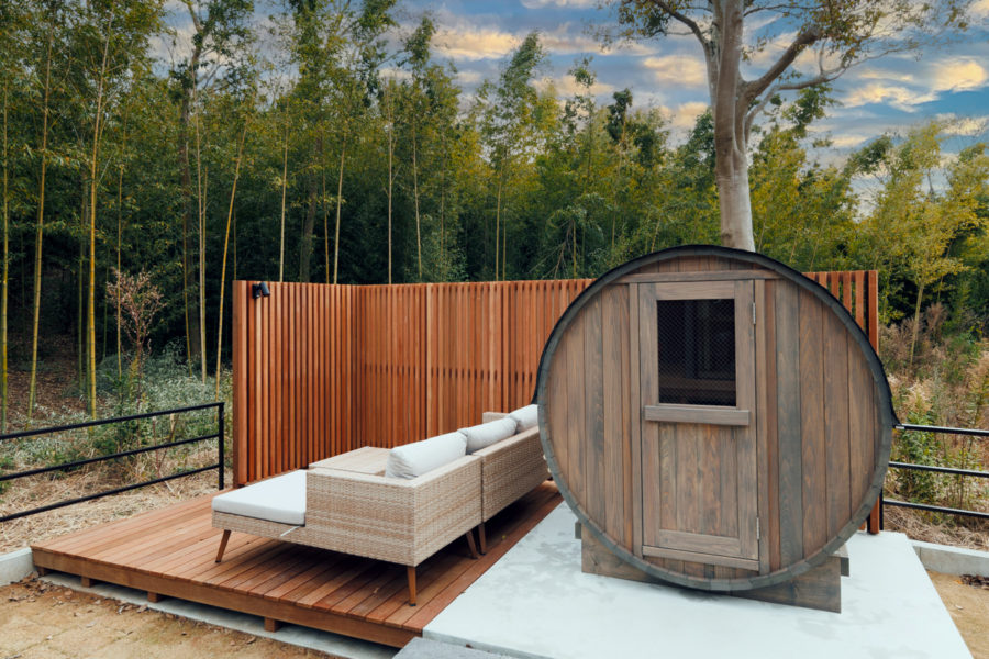 ガレージ、暖炉、ジムスペース、そしてバレルサウナ。