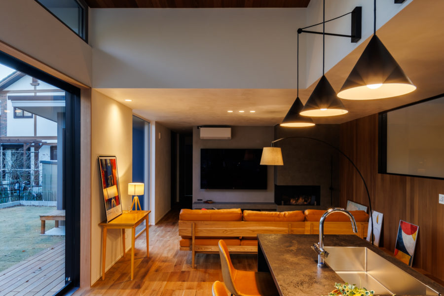 北欧家具と薪ストーブ。深い軒の下の豊かな時間。