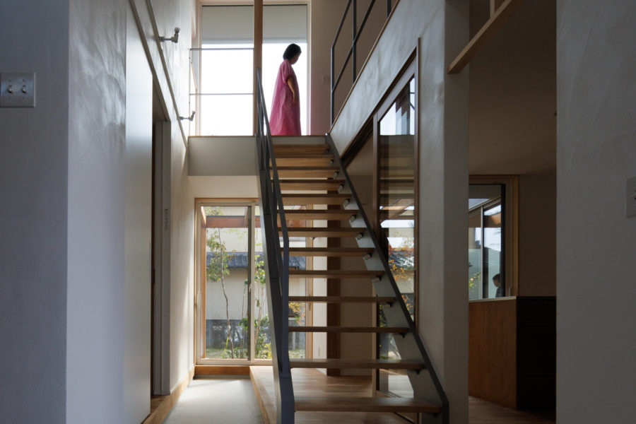 光の入る筒を真ん中に設け、そこを囲うように住まいを配置しました。