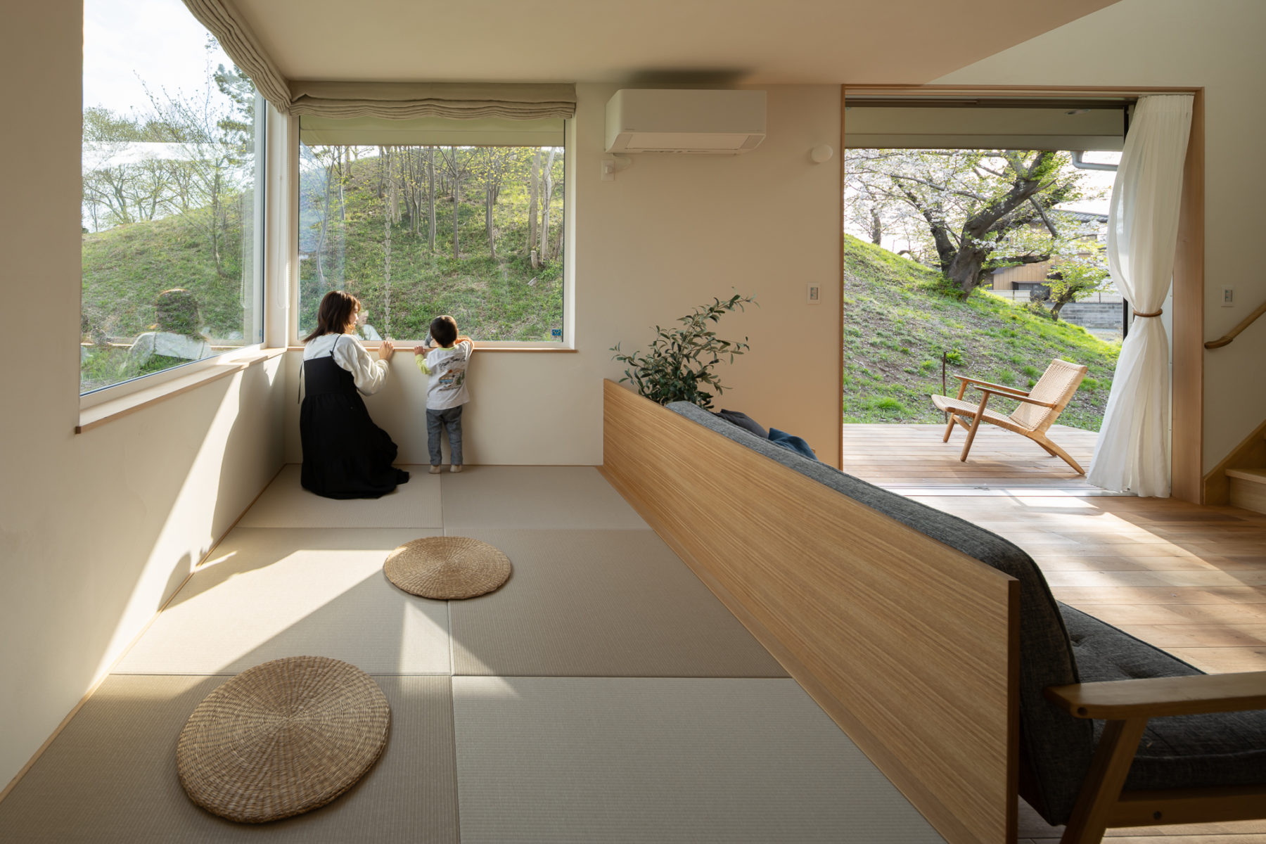 隣地に広がる桜や豊かな緑をそっと暮らしに取り込む設計