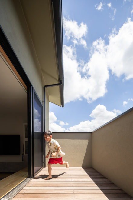 室内からそのまま出られるインナーテラスは、子どもがのびのび遊べる心地よい場所。
