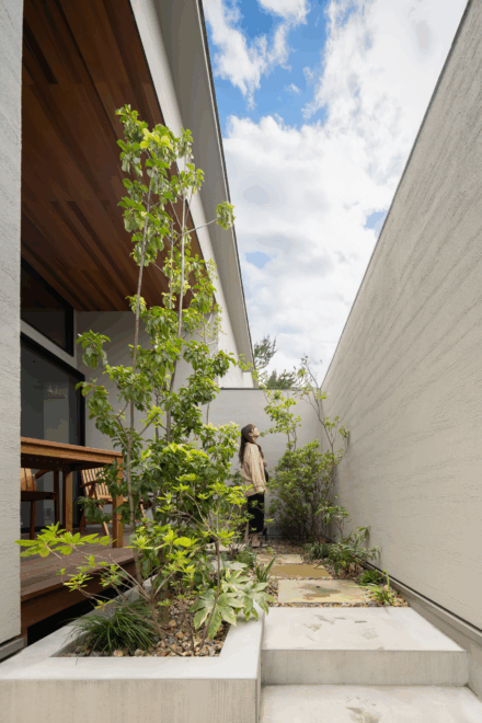 植栽や素材、そして光の取り込み方を丁寧に計画することで、日々の暮らしに小さな心地よさを散りばめています。