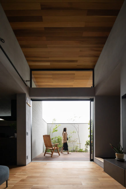 旗竿の閉塞感のある立地を逆に利用した北庭の家。