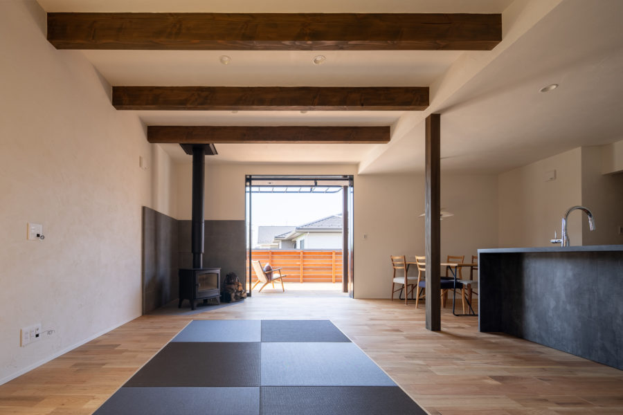 畳スペースがアクセントとなり、落ち着きと開放感が調和しています