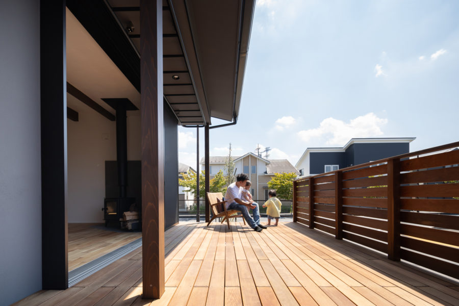 陽光が降り注ぐウッドデッキは、子どもたちの笑顔が映える場所